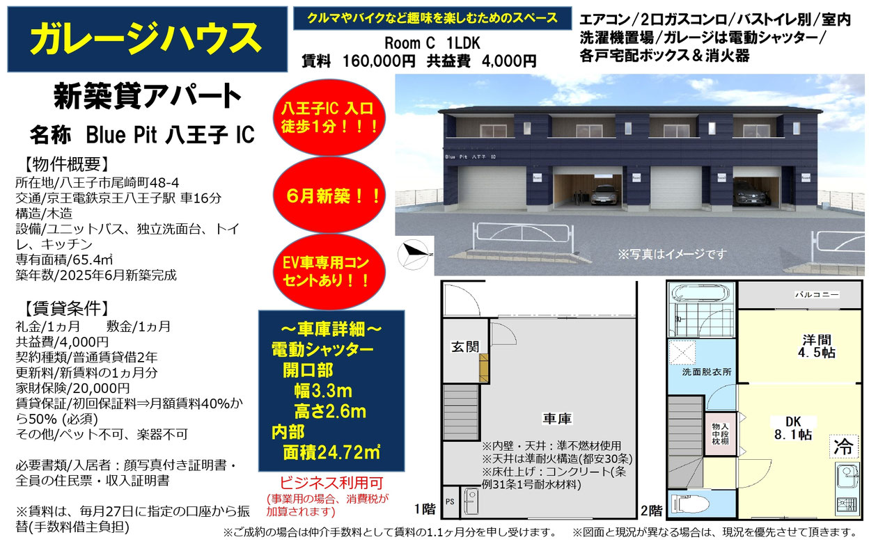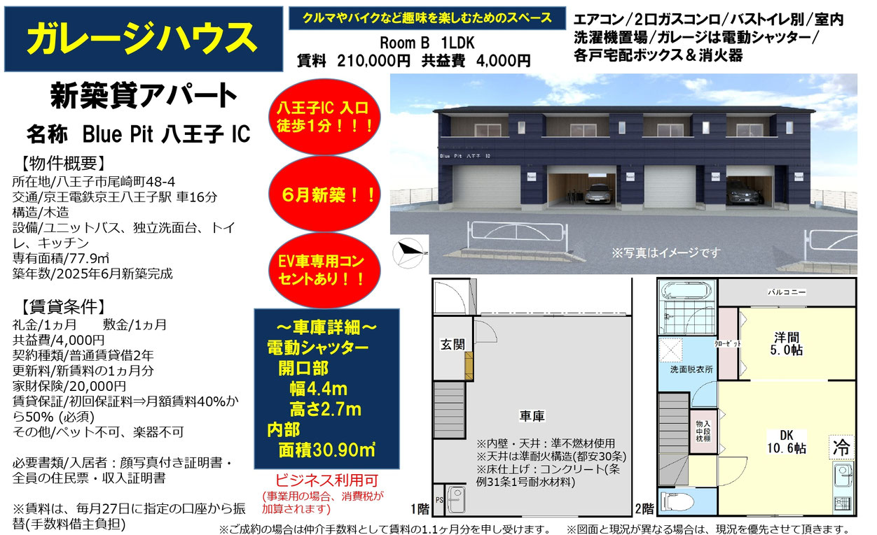 東京都八王子市の新築賃貸ガレージハウス【Blue Pit 八王子 IC(ブルーピット八王子IC)】のご紹介です。