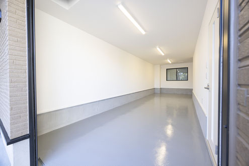 奥行きがあるのでスペースを前後に分けて奥は資材置き場や作業スペース、手前はバイク置き場等様々な用途に利用できそう。