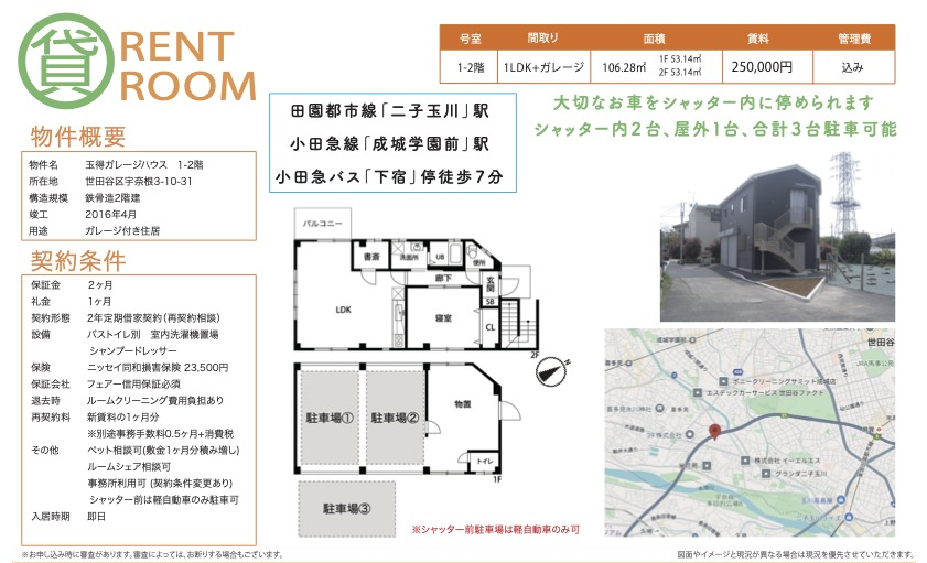 今回ご紹介するのは、東京都世田谷区の賃貸ガレージハウスです。