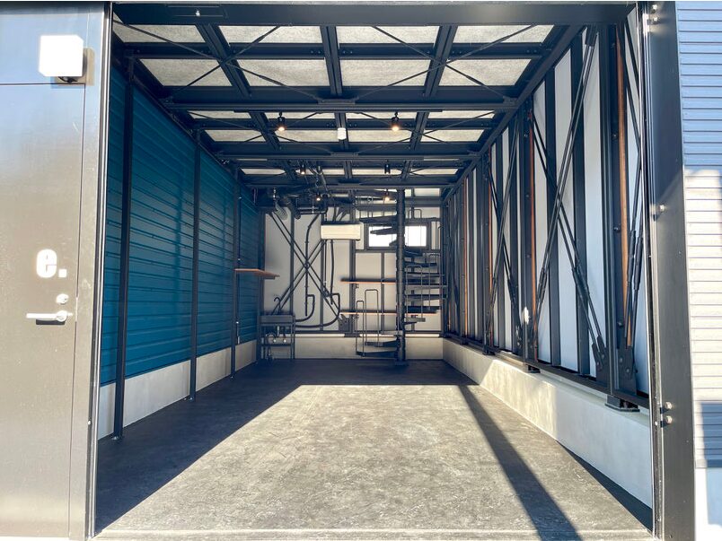 ガレージも居住スペースもむき出しの黒い鉄骨がクールでかっこいい、インダストリアルなデザインのガレージハウスです。