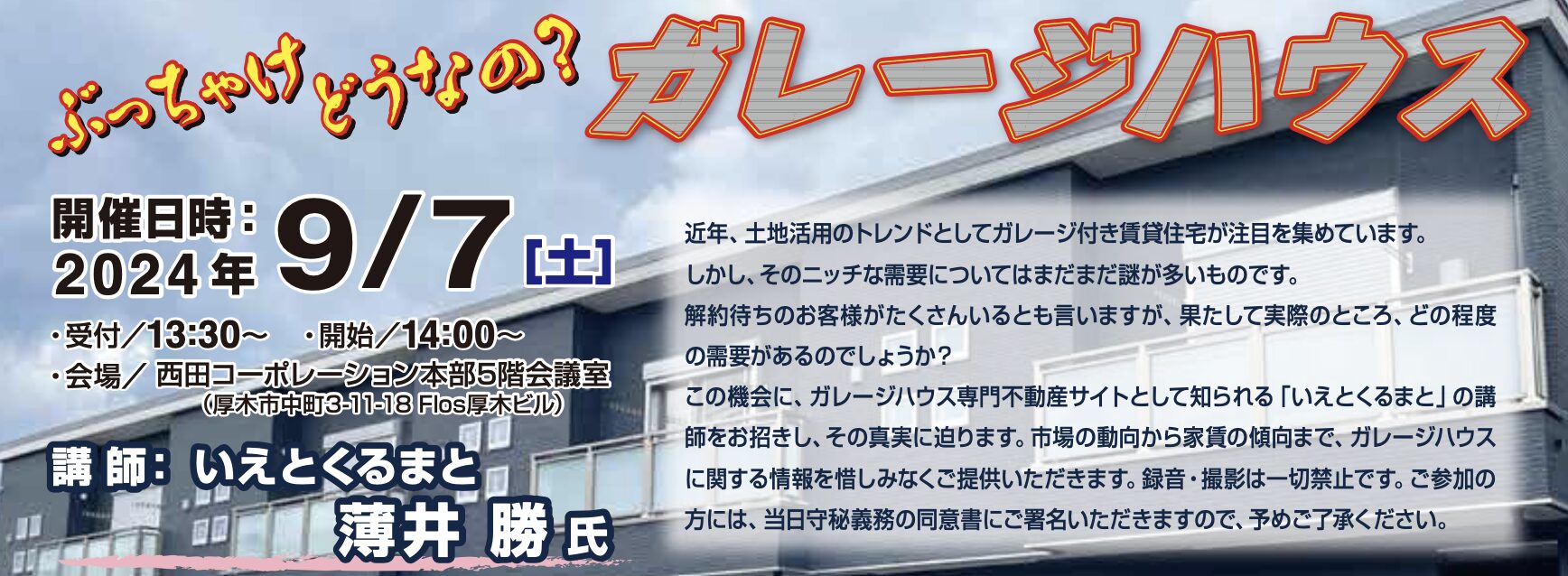 ガレージハウス経営のセミナー開催のお知らせ