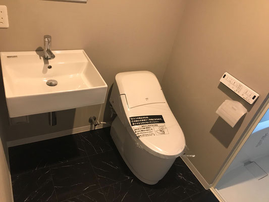 キッチンの後ろ側にはトイレ、洗面台がある脱衣所とバスルームがあります。