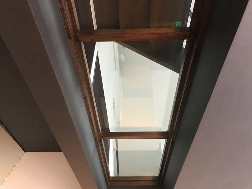 そう、2階の居室からガレージを見下ろせる強化ガラスです♪