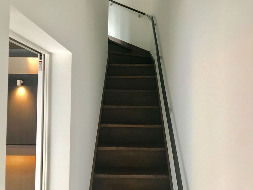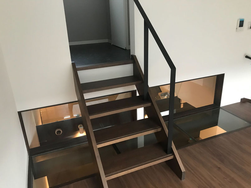 強化ガラスの所にある階段をさらに上がるとキッチンがあります。