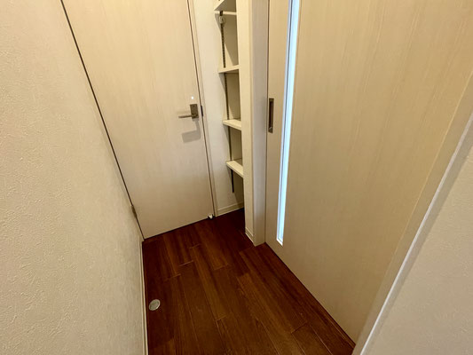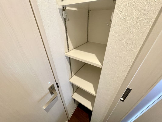 扉のすぐ近くには収納だってあるから買置きだって置けるし、掃除道具も収納出来ますね♪