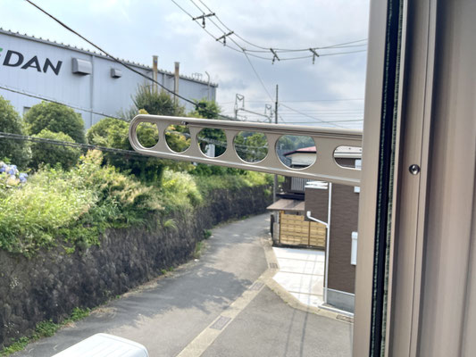 この物件はベランダがありませんのでお洗濯物を干す際は窓に付いている物干しを活用します。
