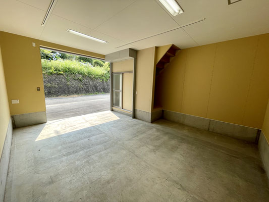 電動シャッターを開けるとガレージ内部はご覧の通り〜