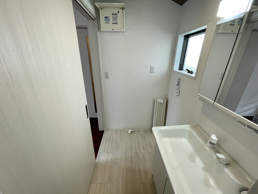 洗濯機置場と独立洗面台がある脱衣所にも換気が出来る子窓付き♪