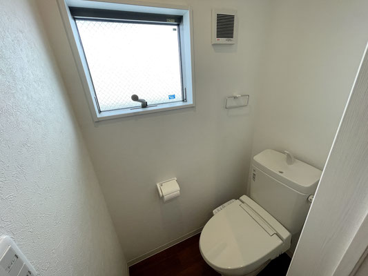 廊下の突き当りのトイレは開閉可能な小窓付きで嬉しいね〜