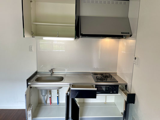 コンパクトですが使い勝手が良さそうなキッチンで自炊も頑張っちゃいましょう〜