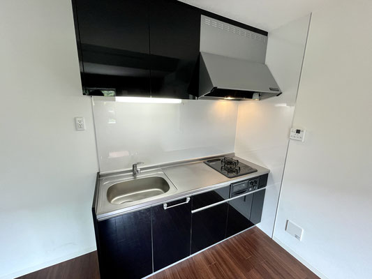 お部屋の中にはブラックなシステムキッチンもあります。