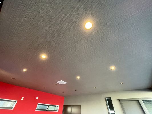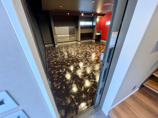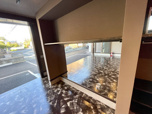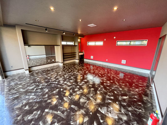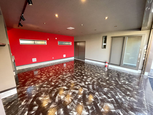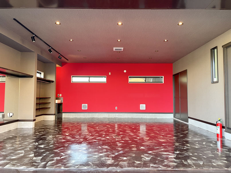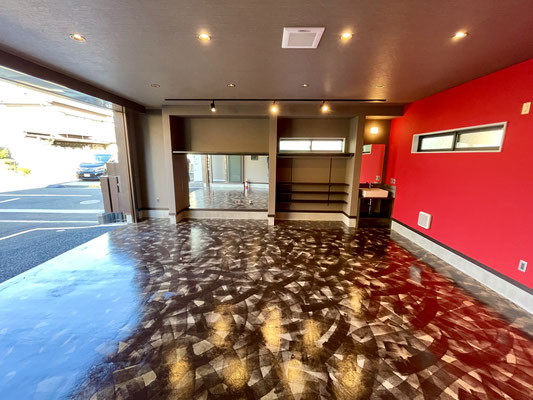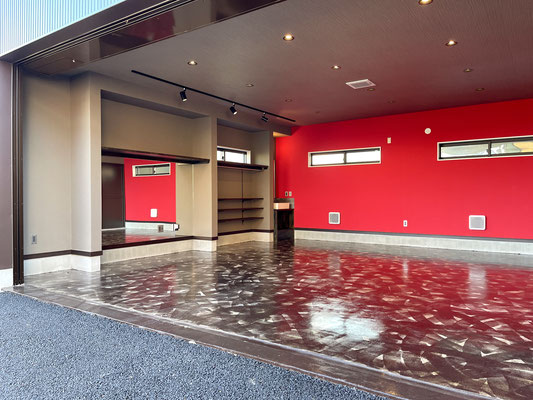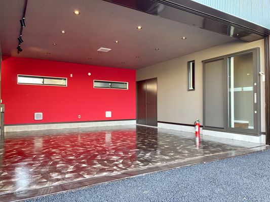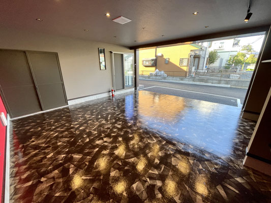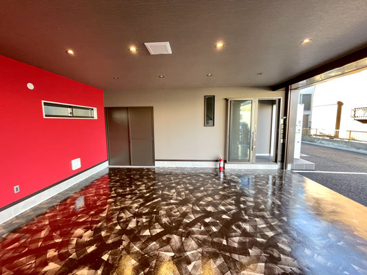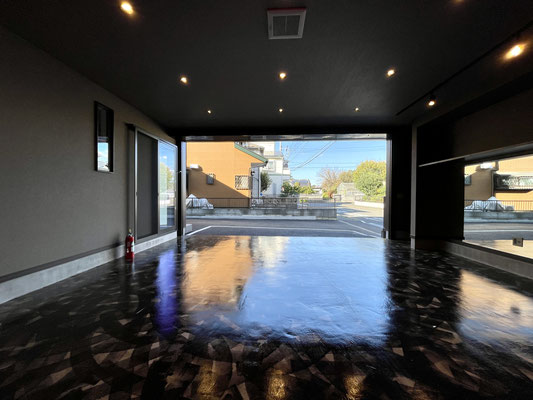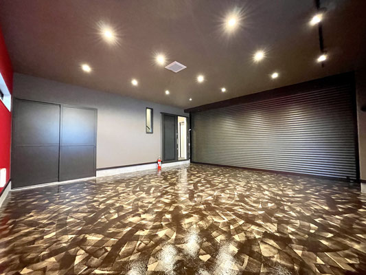 ガレージを閉めても充分な照明と、また照明に映える床。