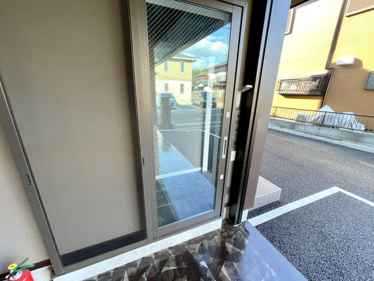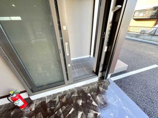 では一度外に出て玄関から見てみましょう。