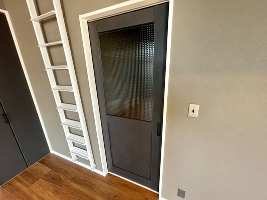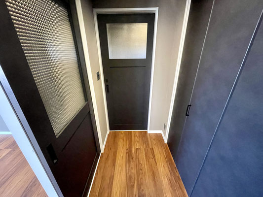 これまたなかなか見ないタイプのカッコ良い室内扉。