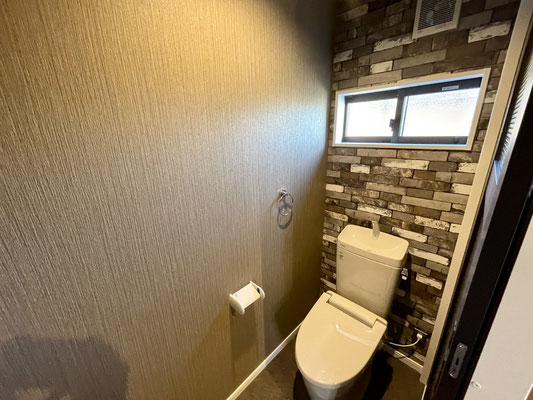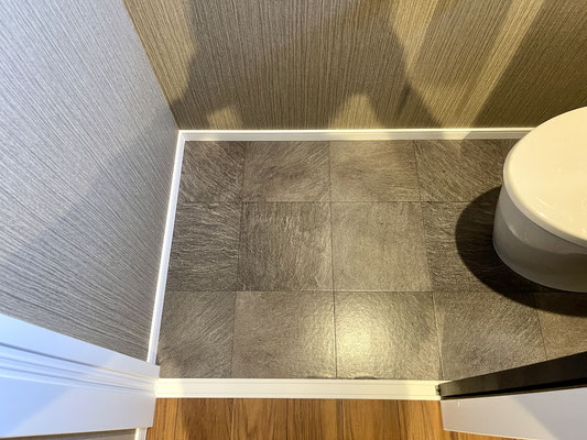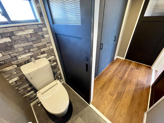 トイレは床も壁も凝ったデザイン。