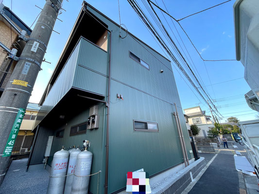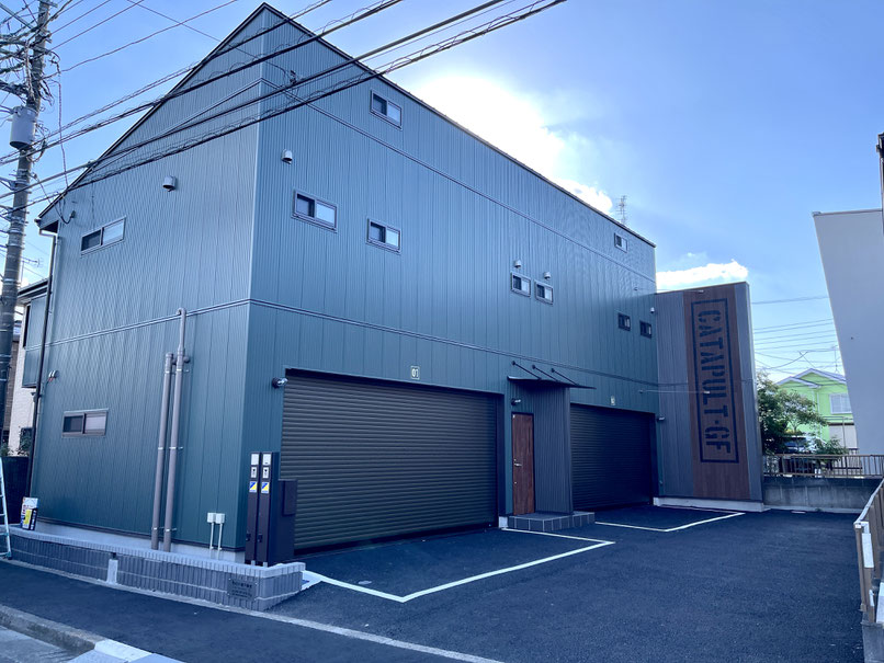インダストリアルな外観。そして広い間口。