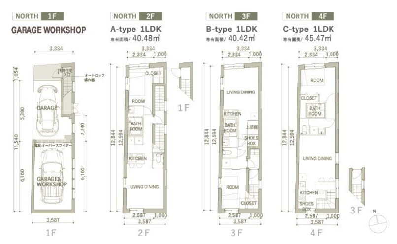 ■総戸数 全3戸(40.48〜45.47㎡)・Garage Workshop