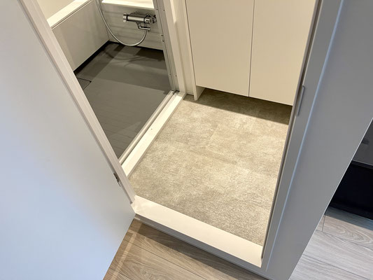玄関から見て、廊下の右手のドアを開けると洗面台のある脱衣所。