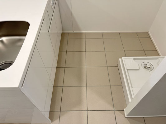 キッチンの後ろは洗濯機置場〜