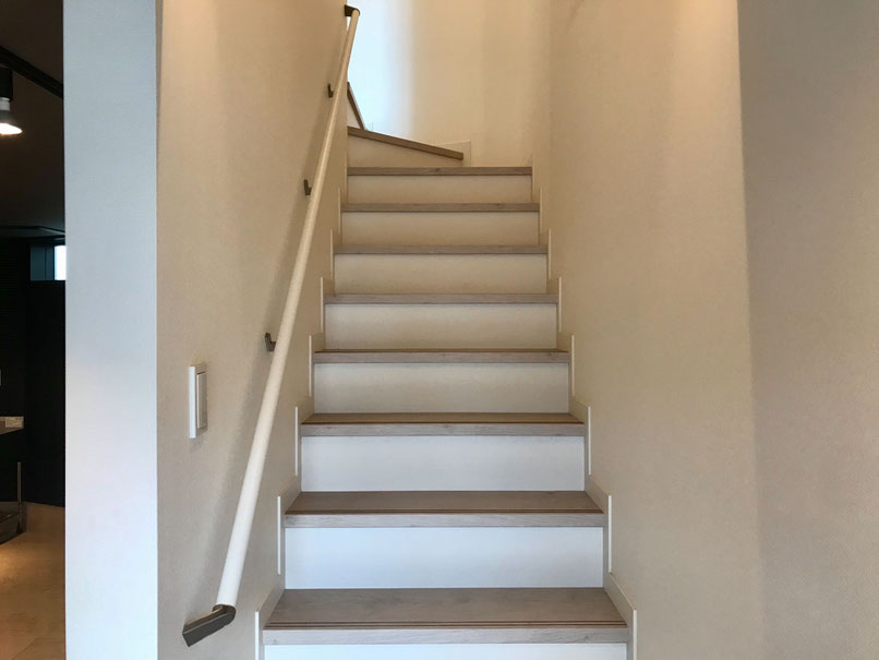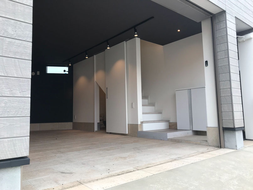 ガレージ部分の床と玄関の床の微妙な段差にこだわりを感じます。