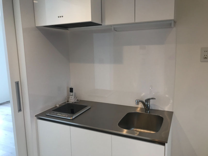 奥の壁材は汚れてもすぐに拭き取れる物が使われております。