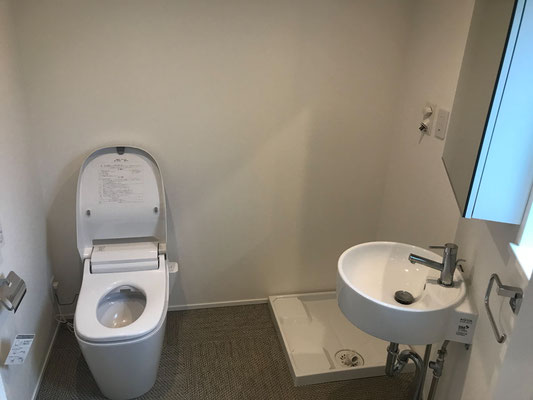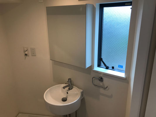 キッチンの脇を入るとトイレや洗面台があります。 洗濯機のスペースも確保!