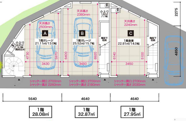 連棟式の木造ガレージハウスの角部屋C号室のご紹介です。