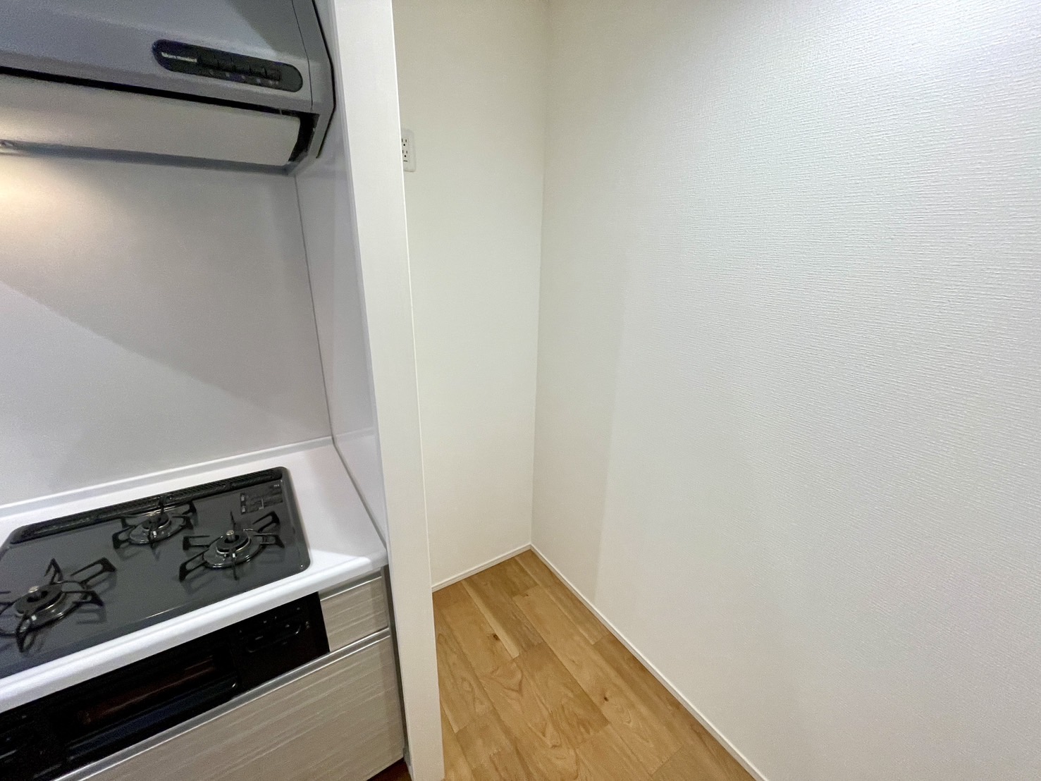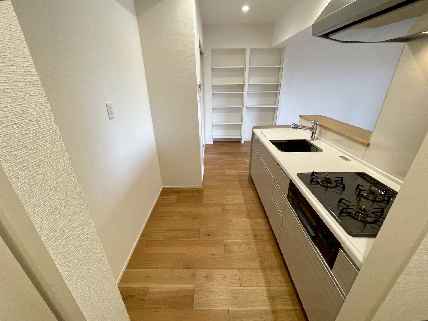 もうひとつはキッチン奥のパントリーで、こちらは扉付きなので生活感の出やすいものもしっかり隠して収納できます。