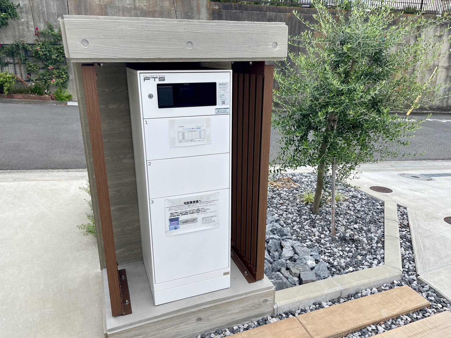 館銘板の裏側には宅配ボックスが設置されており、荷物の受け取りも安心です。