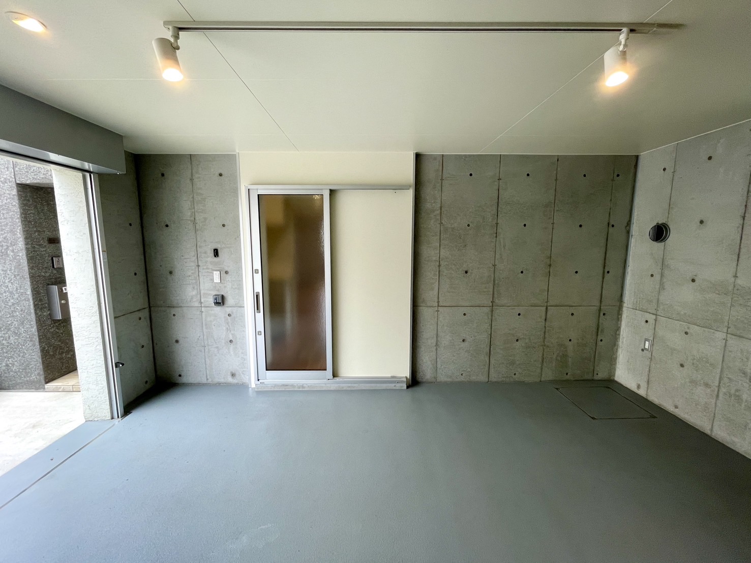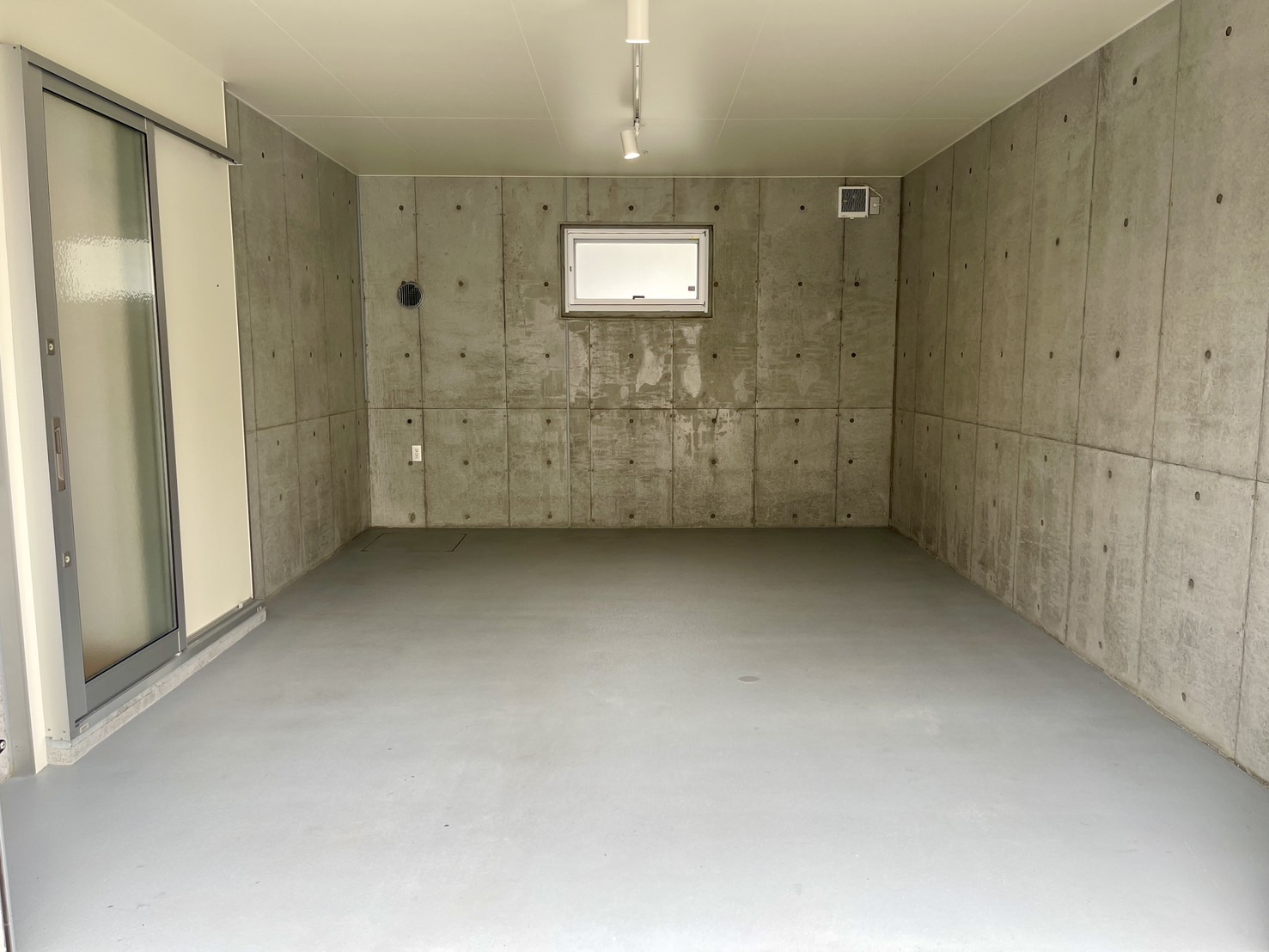 もちろん電動です!シャッターを開けると、ガレージ内部はこんな感じ~