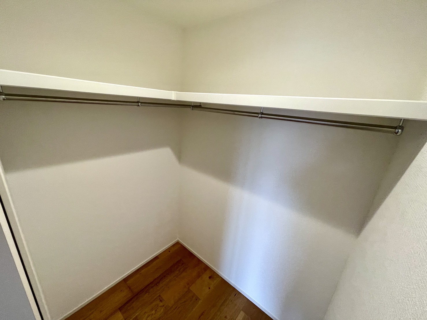 ウォークインクローゼットを備え、L字型のポールで使いやすい収納スペースとなっています。