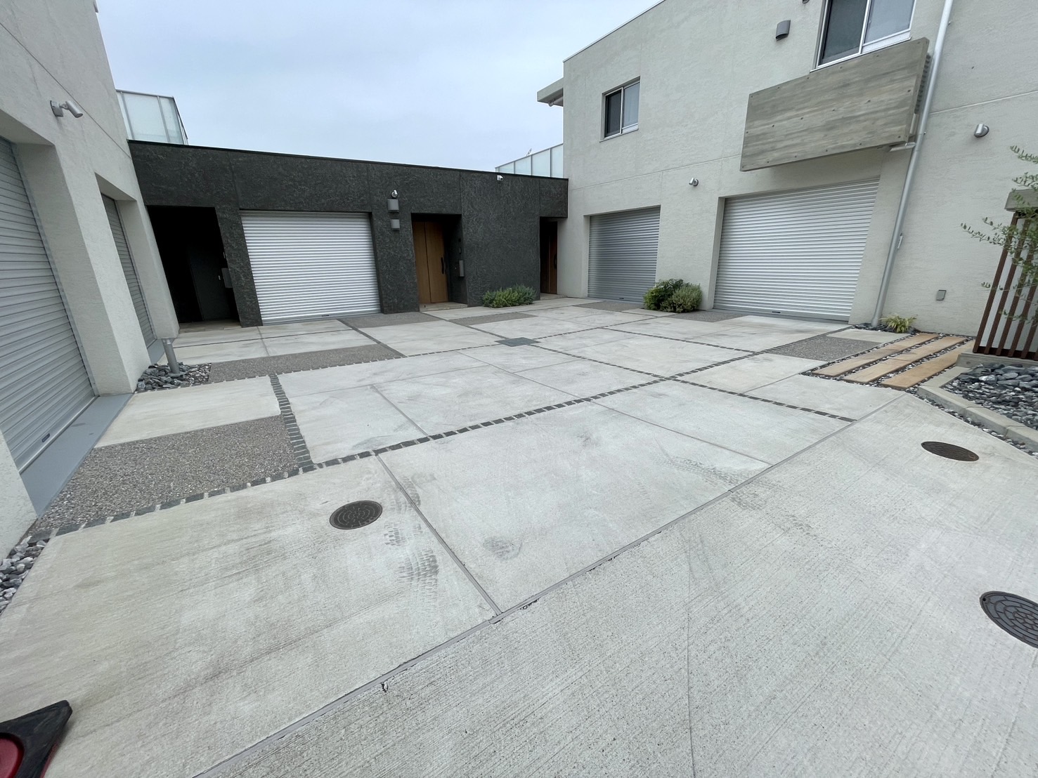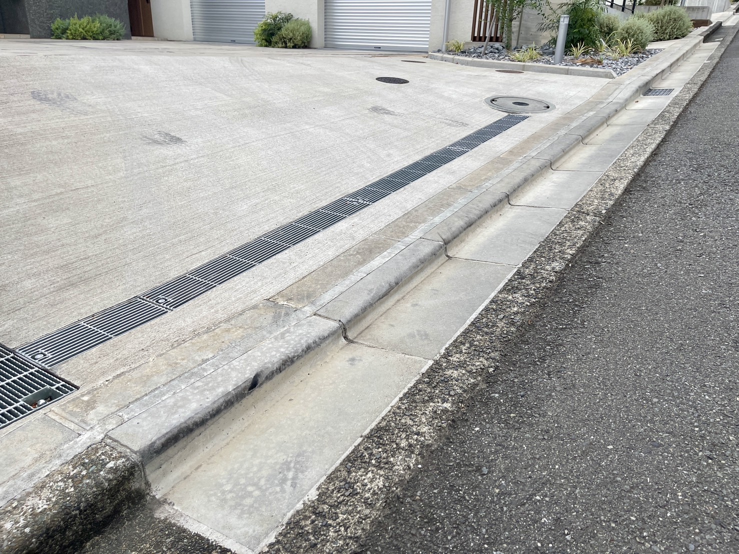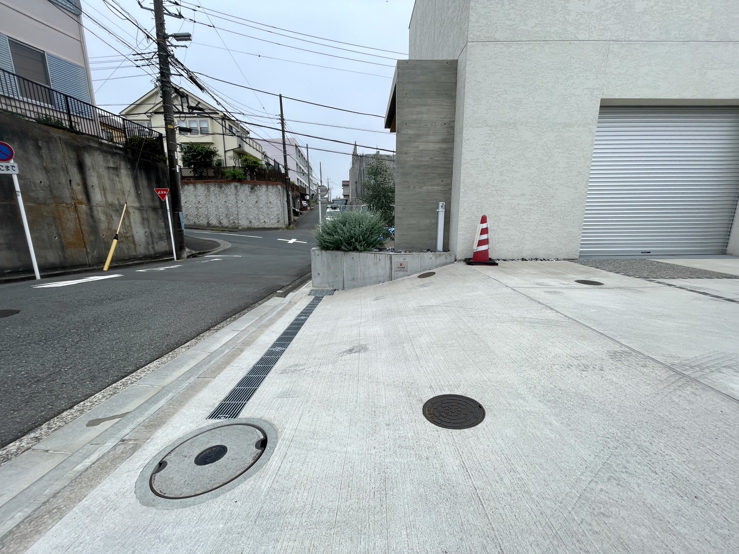 道路から敷地内へはゆるやかなスロープを上って入る形ですが、車高の低いお車だとちょっとドキドキするかもしれません。