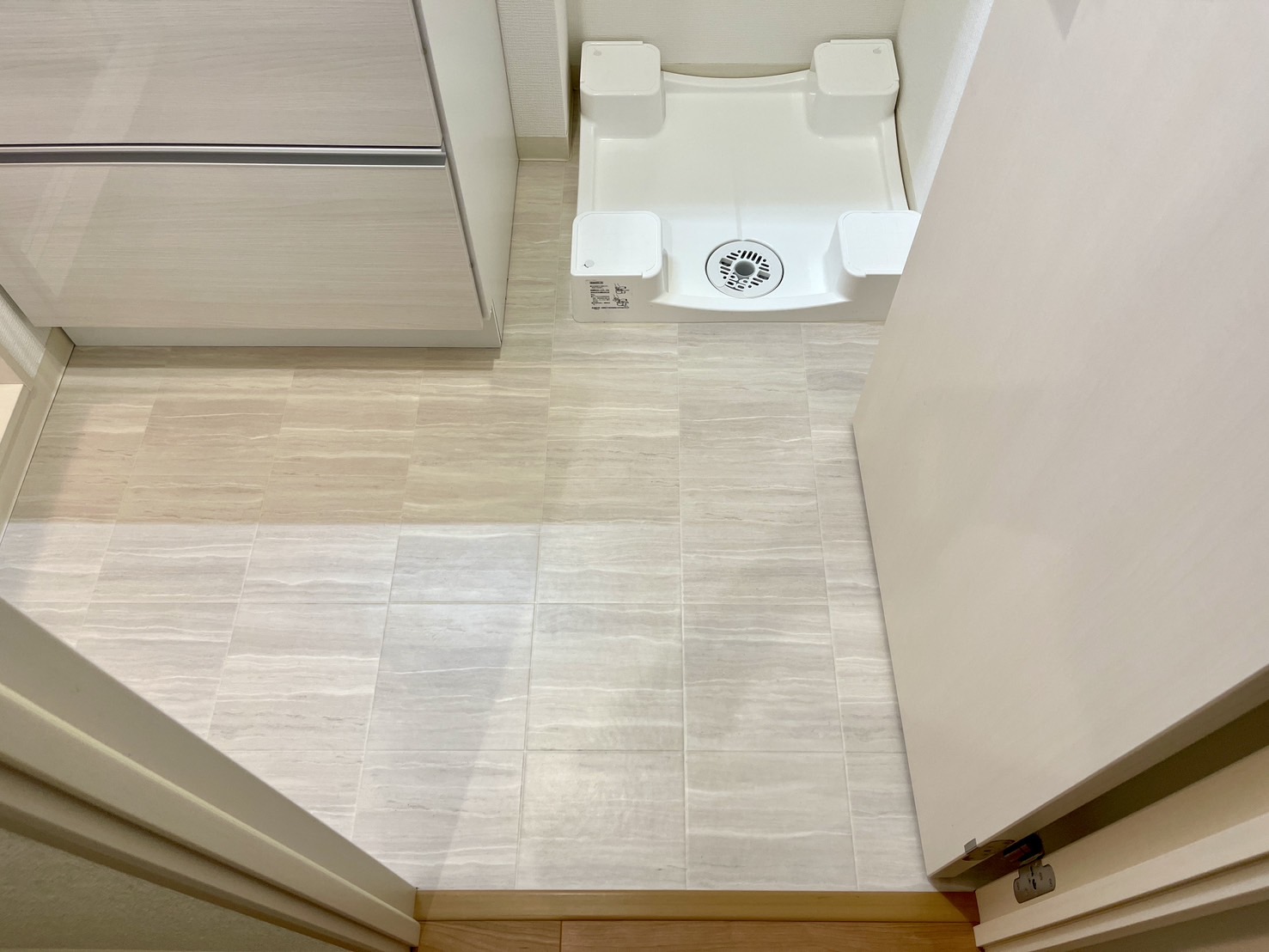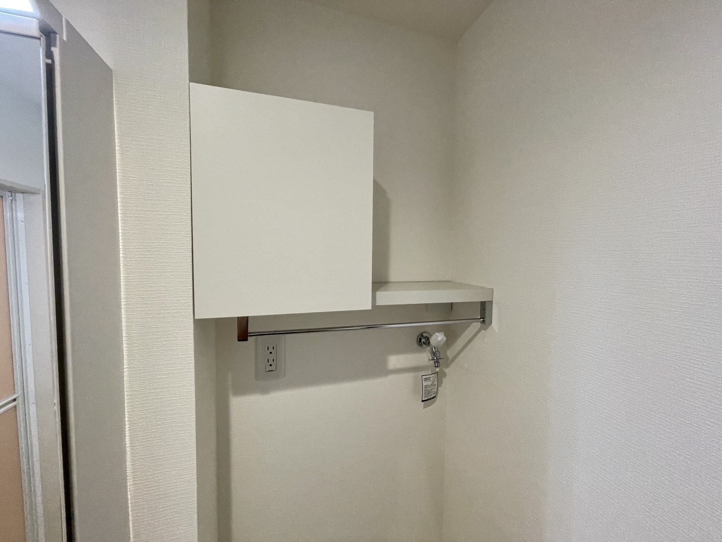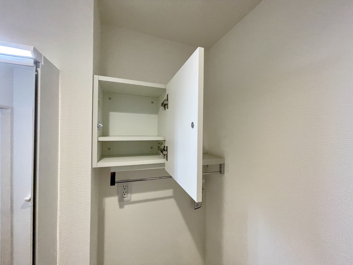その隣には洗濯機置き場が設けられており、上部には便利な収納スペースも完備。