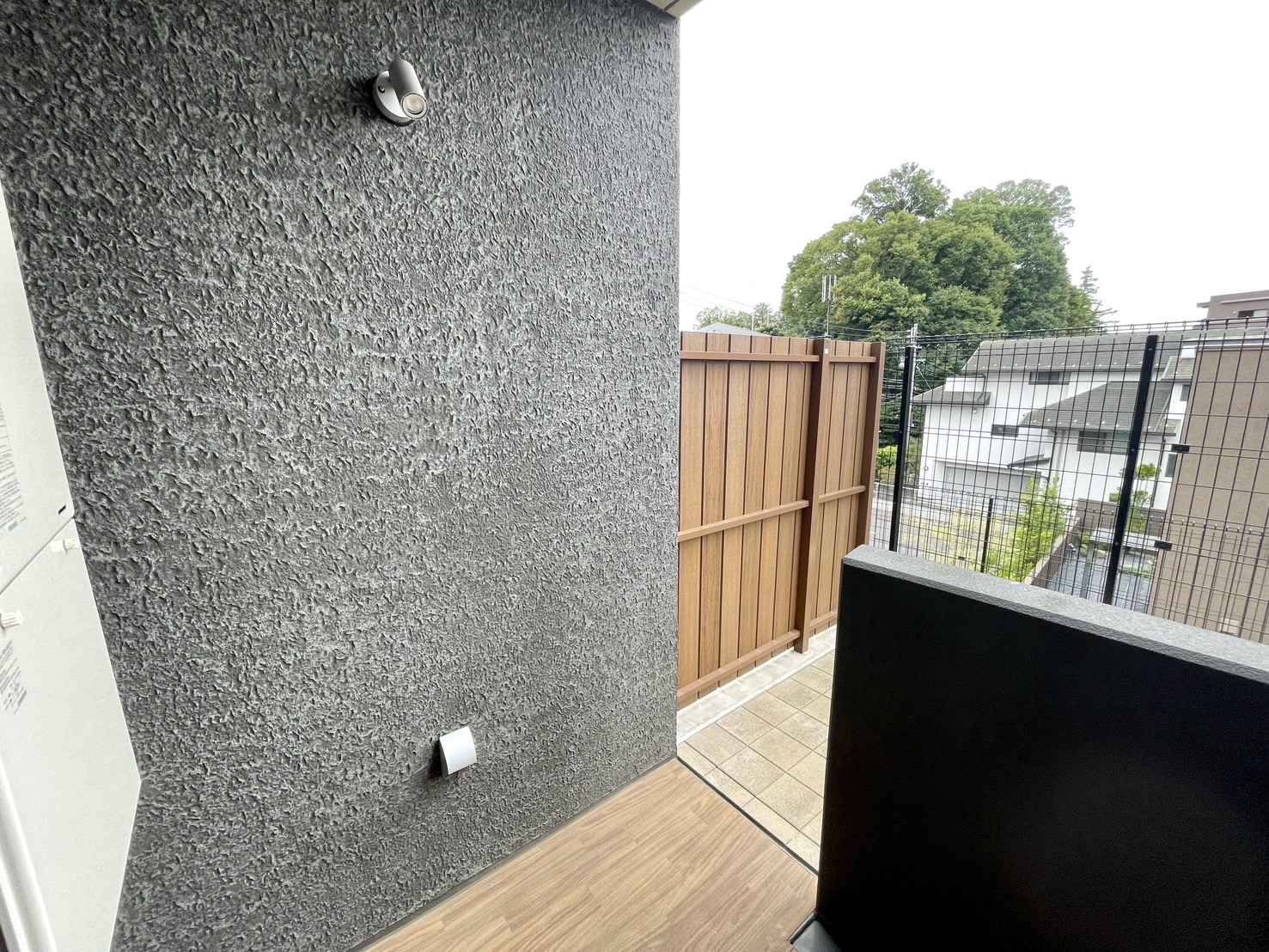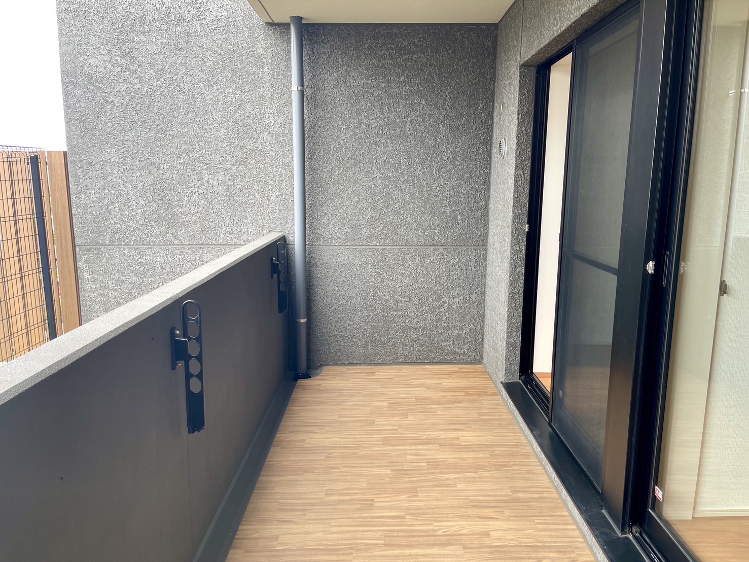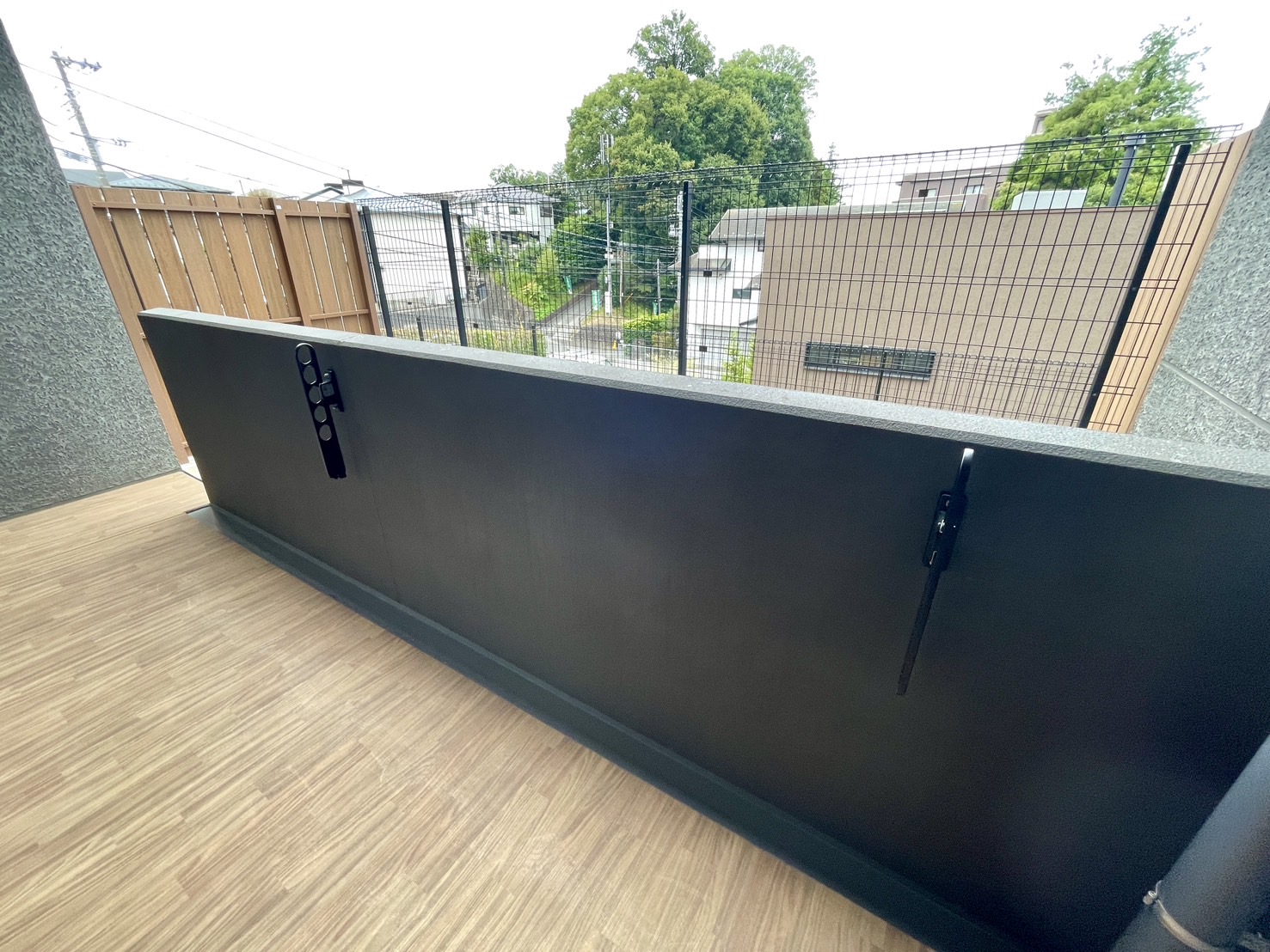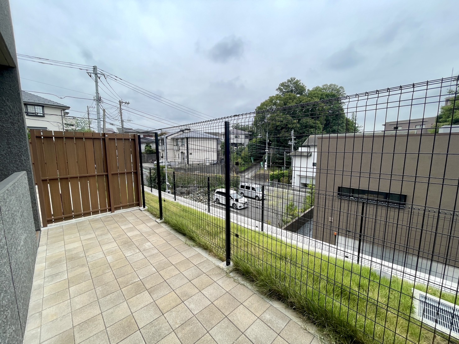 1階のバルコニーも2階と同様床、がウッド調で奥行きも広さもしっかりあり、
