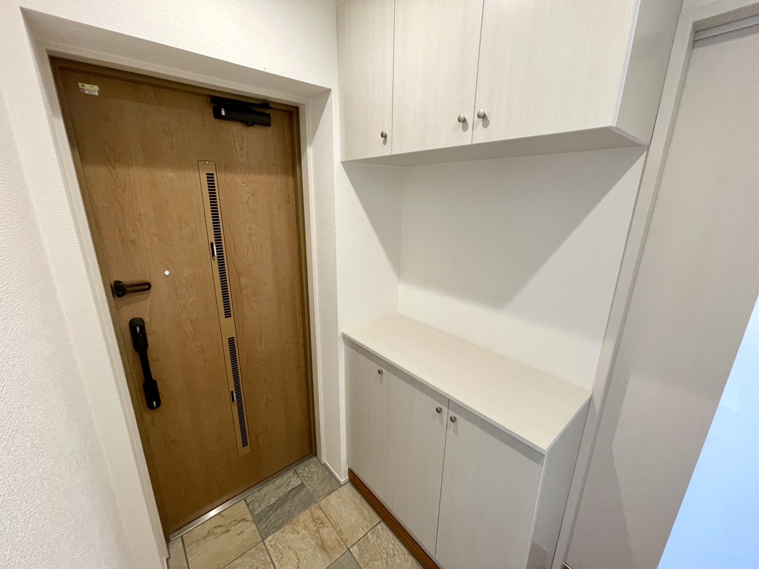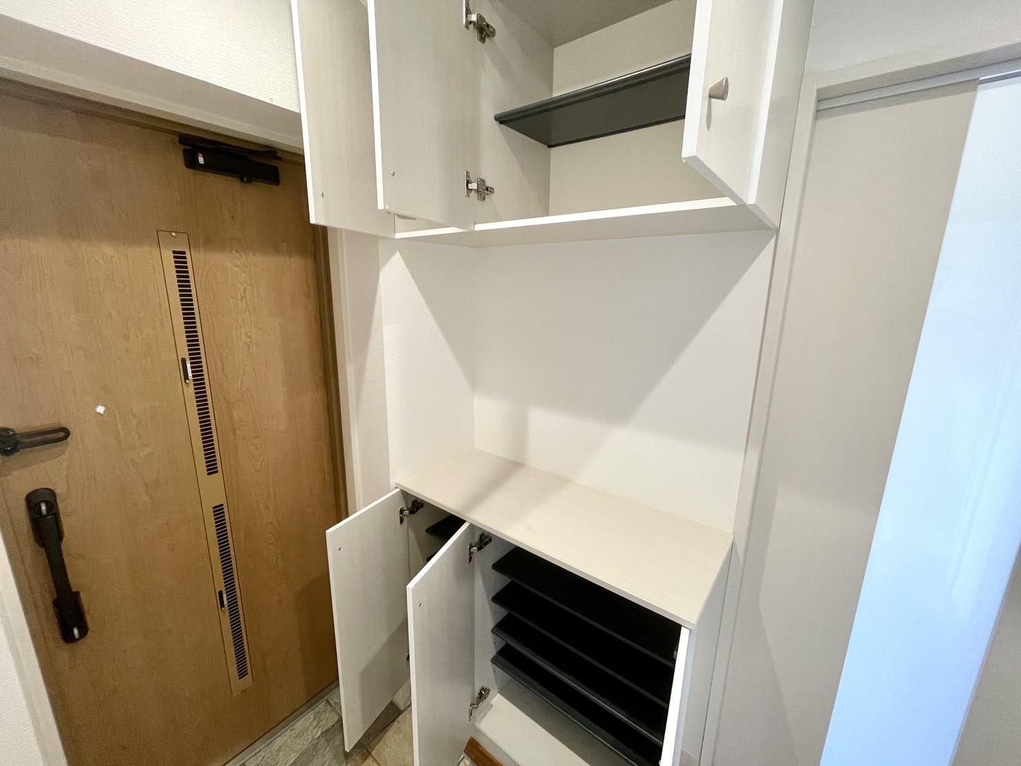 室内に入ると、すぐ左手には下駄箱収納があり、靴まわりをすっきり整えることができます。