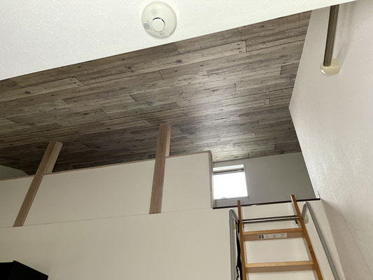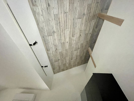 天井はおしゃれなウッド調、照明はありませんが壁に付いたライトレールで必要十分でしょう♪