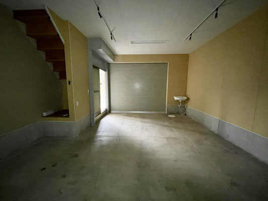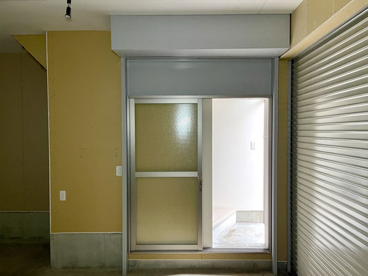 ガレージ内には玄関ホールに通じる鍵付き、シャッター付きのドア、シャッター雨戸付きの窓、