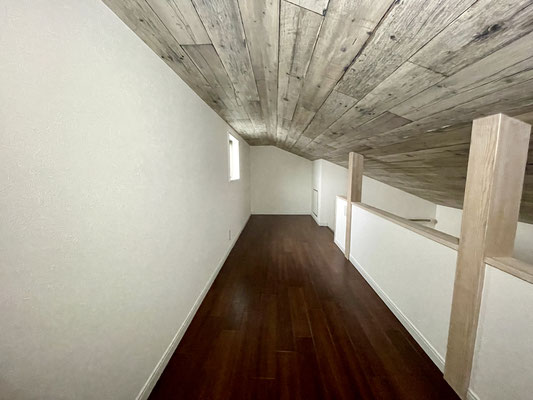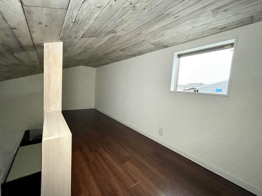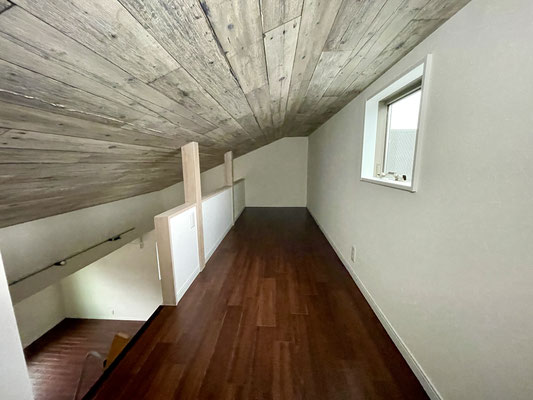 お部屋の幅いっぱいの長細い形状のロフトにも開閉可能な小窓があります。