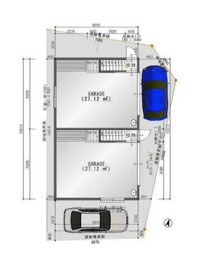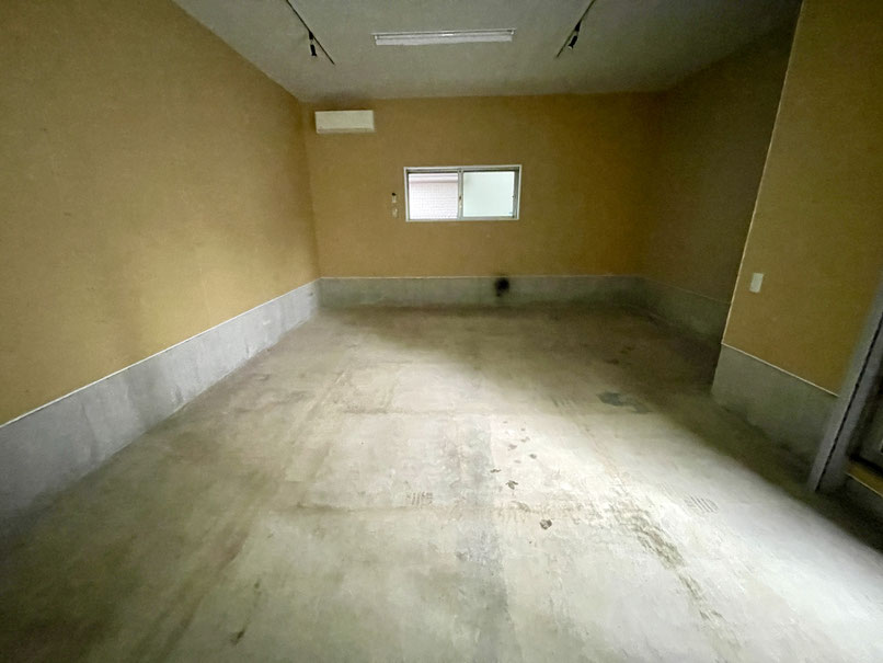 ガレージサイズはシャッター間口が約2.9m 幅は約3.9m 奥の広い所は約4.8m