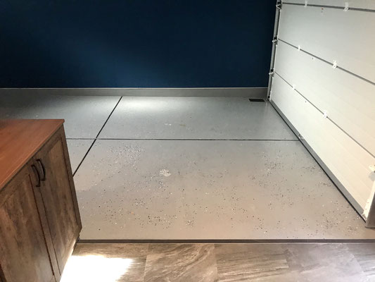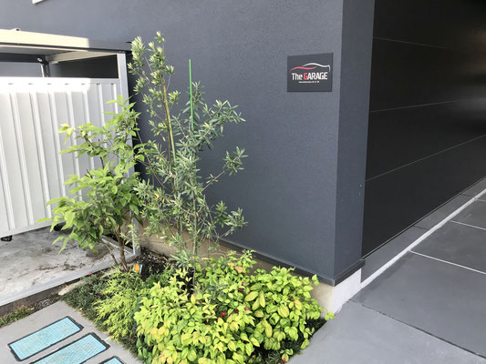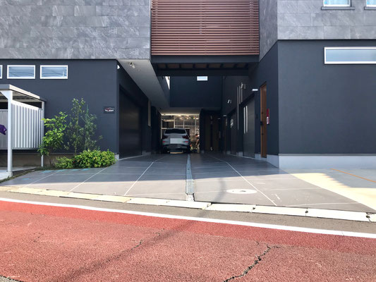 L字型のガレージは玄関側が小上がりのように少し床が上がっていて床材も異なる物を使用しています。
