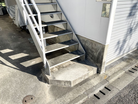 玄関は建物横にある階段を使って2階に登った所にあります。