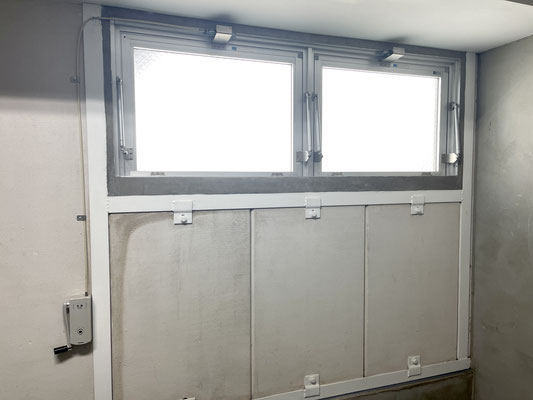 コンパクトなガレージですが、電動のシャッターや換気が出来る窓、電源も各所にあります。