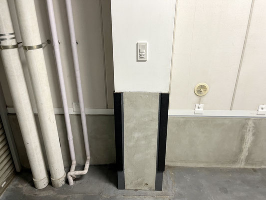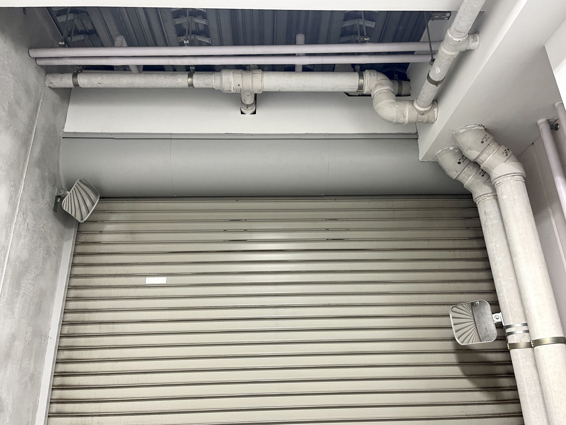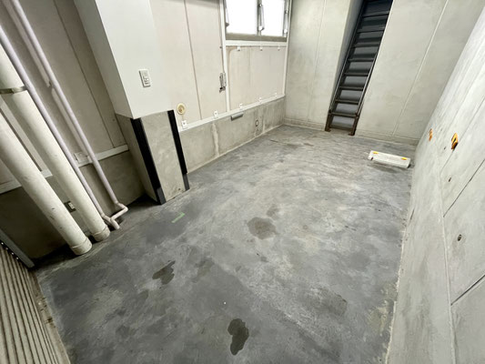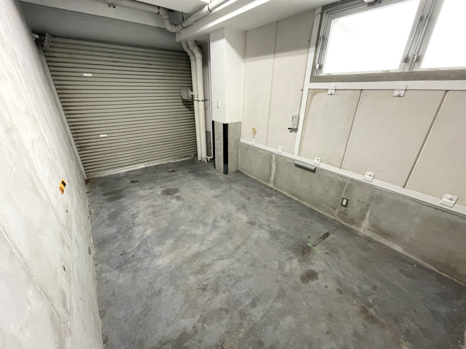 剥き出しのパイプやコンクリート床のオイル染みが男らしいガレージです♪