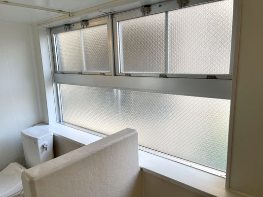 スケスケのバスルームにも大きな窓があり明るい空間です。