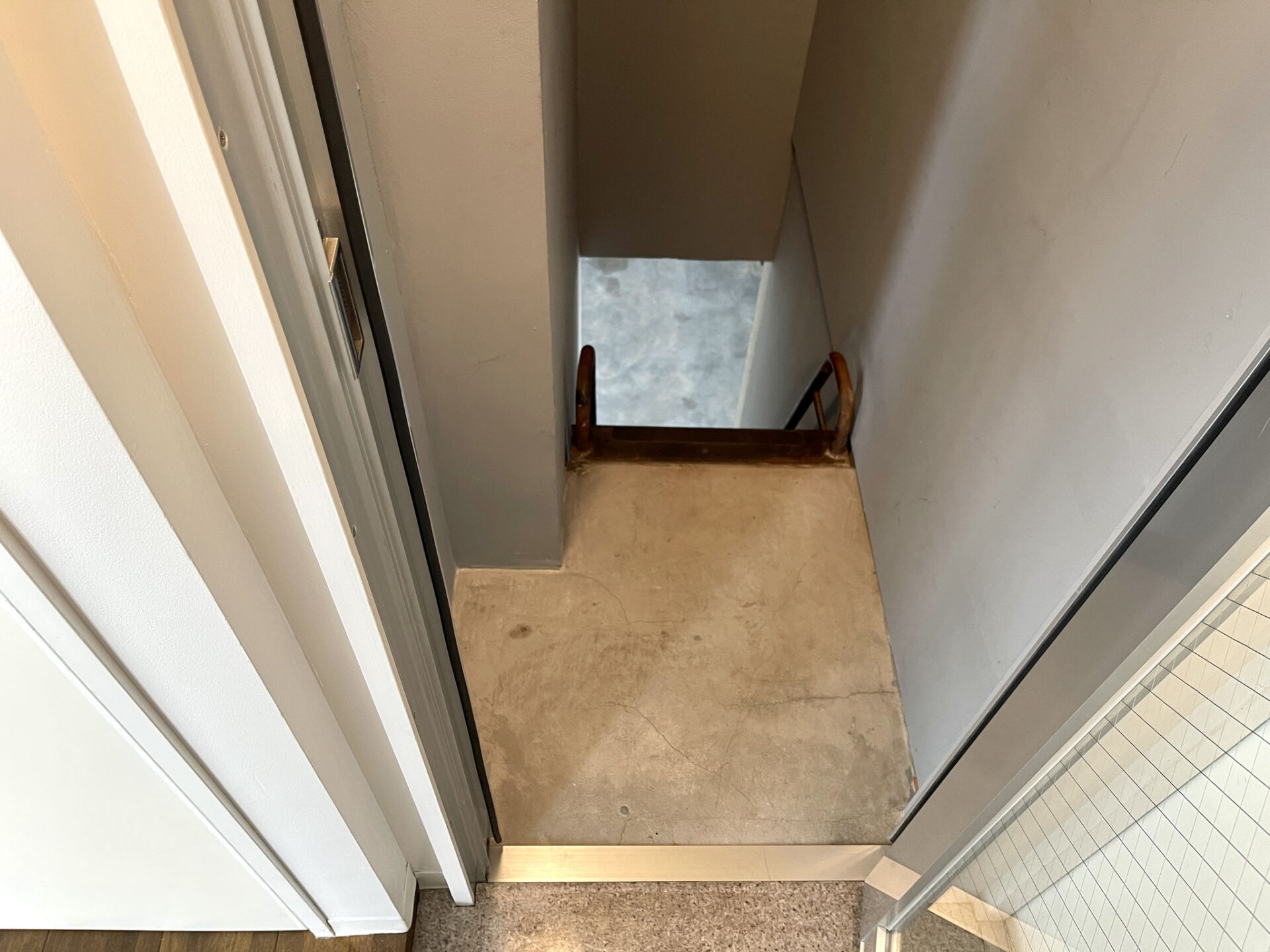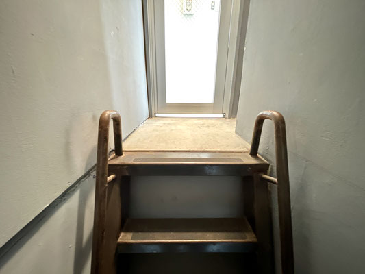 ガラス扉を開けると1階のガレージに降りれるハシゴ?階段?があります。