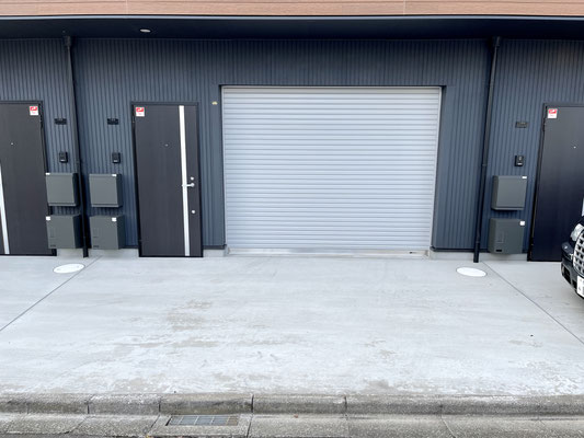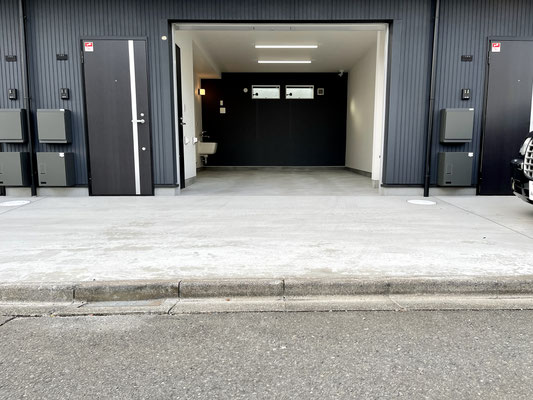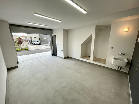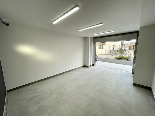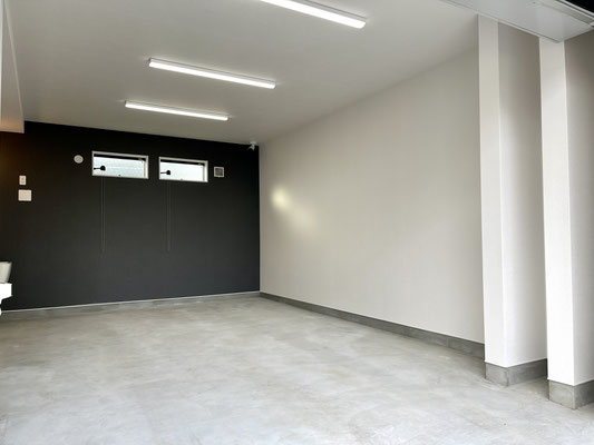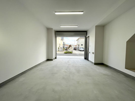 建物正面のガレージシャッターを開けると中はこんな感じ〜