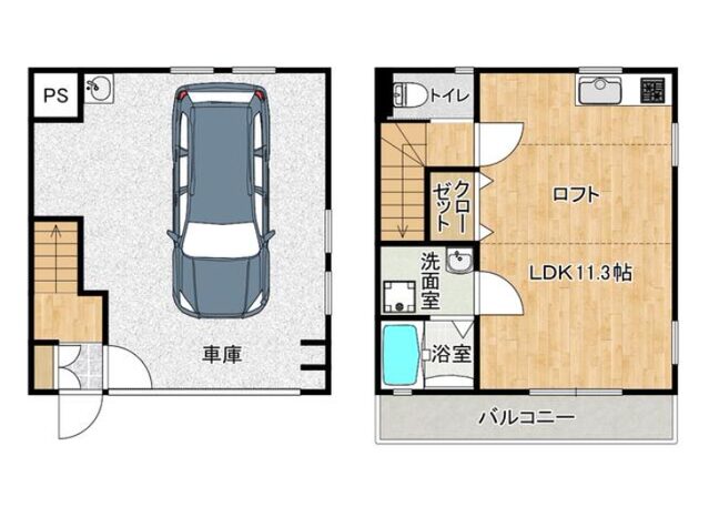 普通サイズのお車ならばゆったり駐車出来るサイズのガレージ!