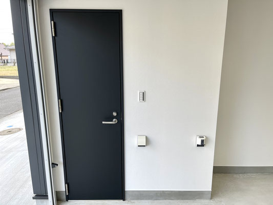 建物前面の玄関ドアもブラックでガレージシャッターはシルバー!