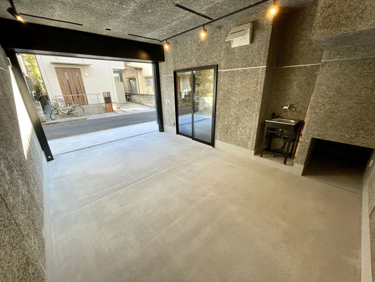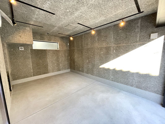 建物自体は木造ですがガレージ内はコンクリート床と相まって鉄筋コンクリート作りのように見えます。