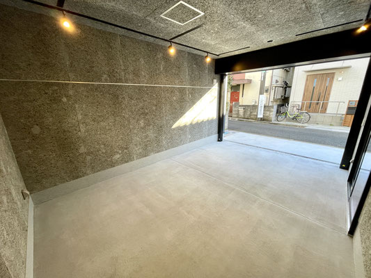 電動シャッターを開けるとガレージ内はご覧の通り〜